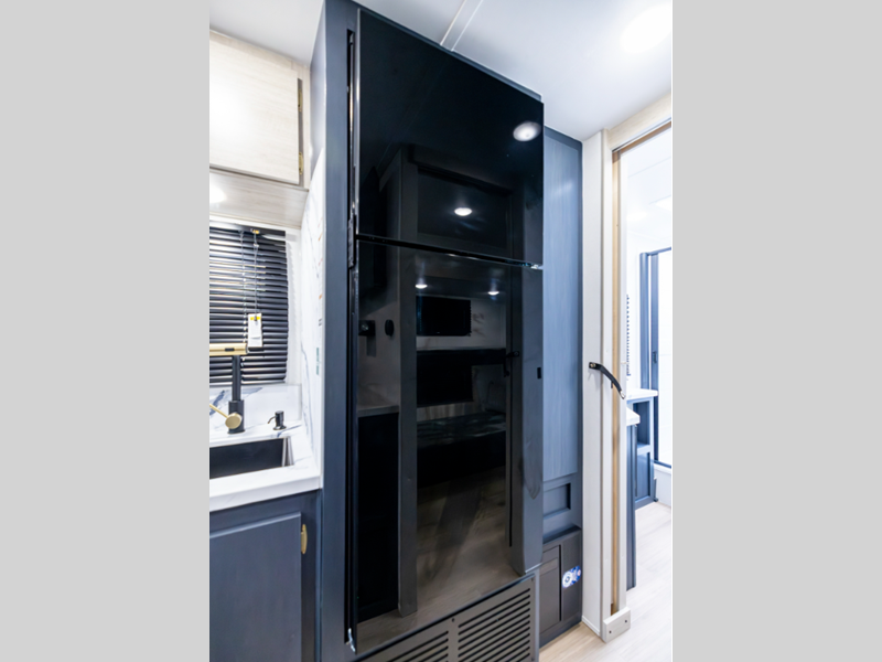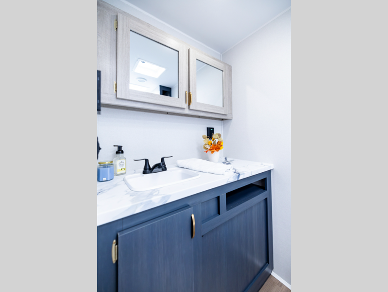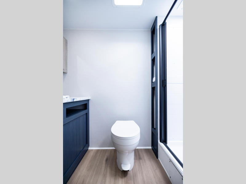 The 81" interior ceiling height throughout provides ample space to move around, while our residential-inspired kitchen and living spaces make you feel right at home. Our tankless on-demand water heater provides endless hot water, while the power awning with adjustable legs offers the perfect outdoor retreat. Plus, with a 7-way plug and chain holder, you'll be ready to hook up and go.