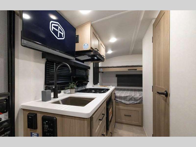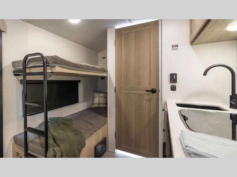 Sleeps 5 Slides 1 Length 21 ft 2 in Ext Width 7 ft 8 in Ext Height 10 ft 4 in Hitch Weight 501 lbs Dry Weight 3843 lbs Cargo Capacity 1155 lbs Fresh Water Capacity 31 gals Grey Water Capacity 27 gals Black Water Capacity 27 gals Furnace BTU 20000 btu Number Of Bunks 2 Available Beds Full Refrigerator Type 12V Convection Cooking Yes Cooktop Burners 3 Number of Awnings 1 LP Tank Capacity 20 lbs Water Heater Type Gas/Electric AC BTU 13500 btu TV Info 12V Smart TV Awning Info 14' Power Axle Count 1 Number of LP Tanks 2 Shower Type Standard Solar Wattage 200 watts Similar Floorplans