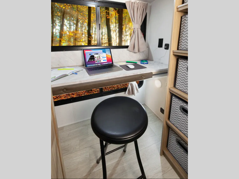 Sleeps 3 Length 22 ft 8 in Ext Width 8 ft Ext Height 10 ft 1 in Hitch Weight 521 lbs Dry Weight 3986 lbs Cargo Capacity 3685 lbs Fresh Water Capacity 40 gals Grey Water Capacity 30 gals Black Water Capacity 30 gals Available Beds Versa-Tilt Custom King Number of Awnings 1 Water Heater Type Tankless AC BTU 13500 btu Awning Info 10' with 4K Blade Lighting Axle Count 2 Shower Type Radius Similar Floorplans