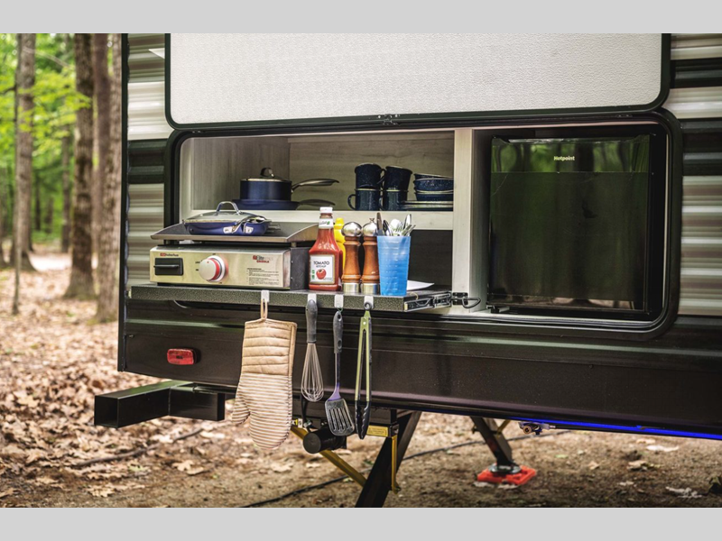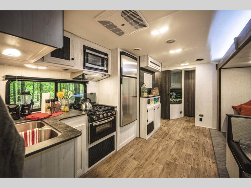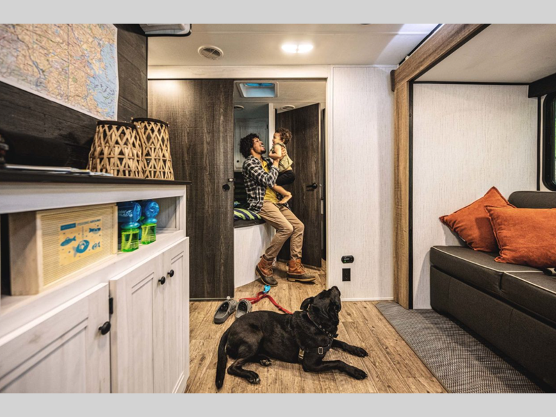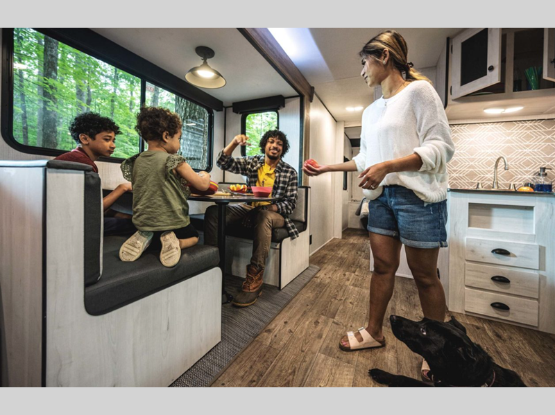 Whether you choose a single axle or double axle travel trailer, you're sure to find comfort at every turn. There are comfortable seating and sleeping spaces, full bath and kitchen amenities, plus ample storage for camp gear and personal belongings!
