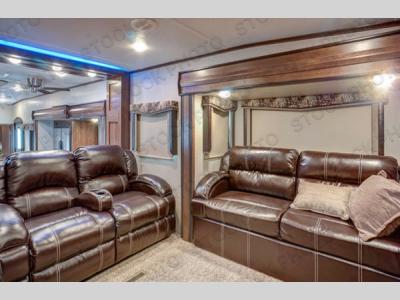 Keystone's innovation lab has reengineered the fifth wheel chassis so that it is stronger and lighter which means that you can travel confidently for years to come. Also, the MaxTurn technology gives you an additional 8" of turning radius. Each floorplan comes with a king-size bed for the ultimate comfort, along with Beauflor vinyl flooring throughout, accent crown molding, a central vacuum system and more!