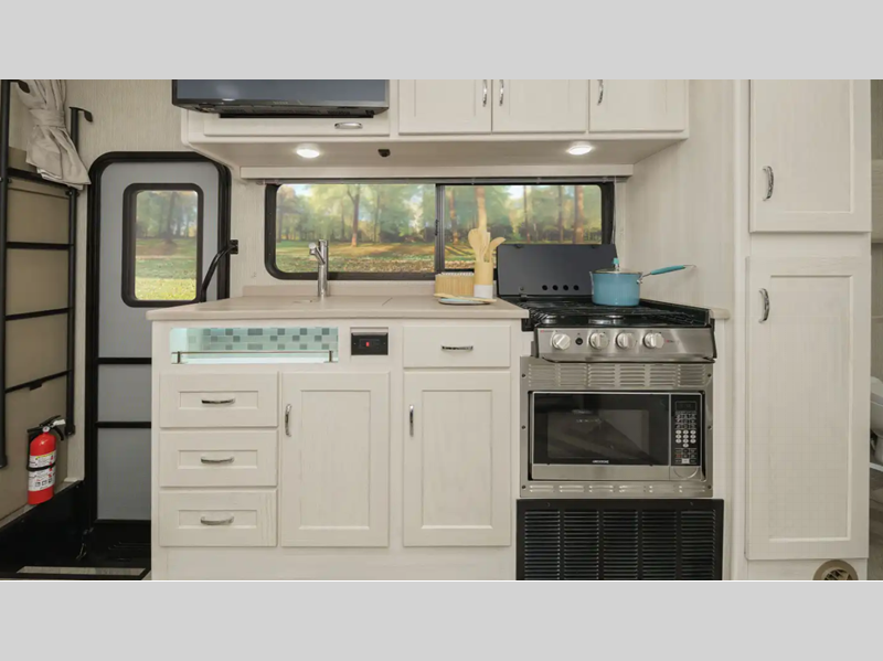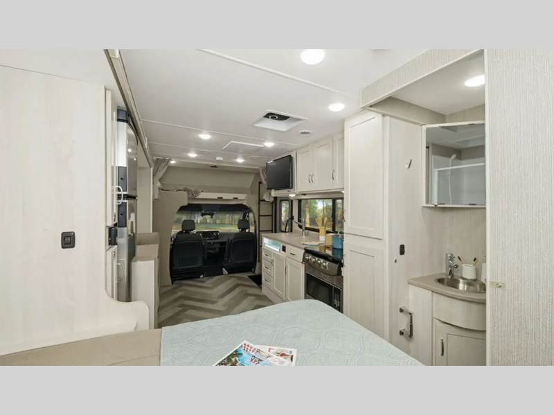 Sleeps 4 Slides 1 Length 24 ft 5 in Ext Width 7 ft 6 in Ext Height 11 ft 4 in Int Height 7 ft Interior Color Oasis, Dutton Exterior Color Tungsten or Sand Full-Body Paint Hitch Weight 5000 lbs GVWR 11030 lbs Fresh Water Capacity 37 gals Grey Water Capacity 41 gals Black Water Capacity 41 gals Furnace BTU 20000 btu Generator 3,600-watt Cummins Onan MicroQuiet Fuel Type Diesel Engine 2.0L High Output Turbo Diesel 4-Cylinder Chassis Mercedes Benz RWD Sprinter Fuel Capacity 24.5 gals Wheelbase 170 in Number Of Bunks 1 Available Beds RV Queen Refrigerator Type 12V Compressor Driven Refrigerator Size 10 cu ft Convection Cooking Yes Cooktop Burners 3 Shower Size 24" x 32" Number of Awnings 1 Axle Weight Front 4410 lbs Axle Weight Rear 7720 lbs LP Tank Capacity 51.6 lbs. Water Heater Capacity 6 gal Water Heater Type LP with Electronic Ignition AC BTU 13500 btu Basement Storage 42 cu. ft. TV Info LR 32" Smart LED HDTV Awning Info 15' Power with LED Lights Gross Combined Weight 15250 lbs Shower Type Standard Electrical Service 30 amp Similar Floorplans