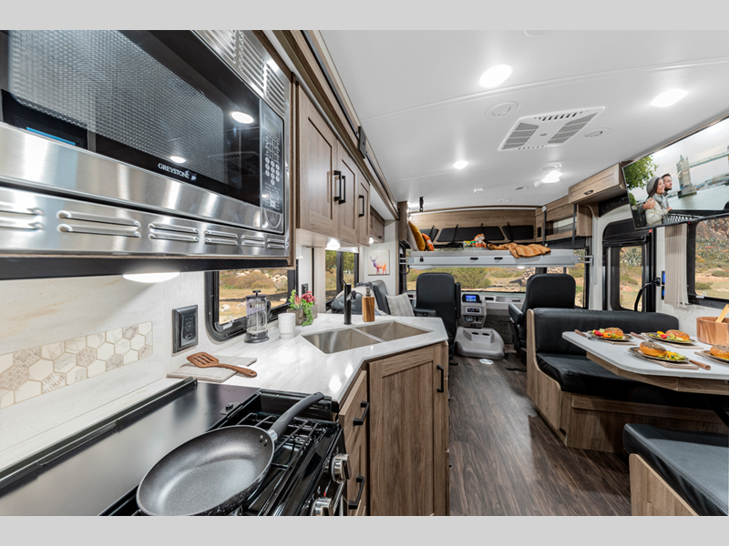 Travel comfortably in a Winnebago Vista National Park Foundation Limited Edition Class A gas motorhome with exclusive features and advanced energy technology! The frameless tinted windows let you gaze out at your beautiful surroundings with unobstructed views from the inside.