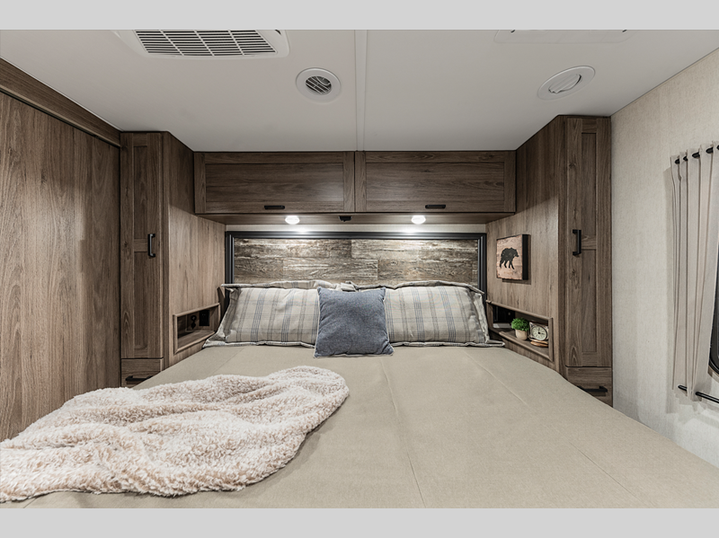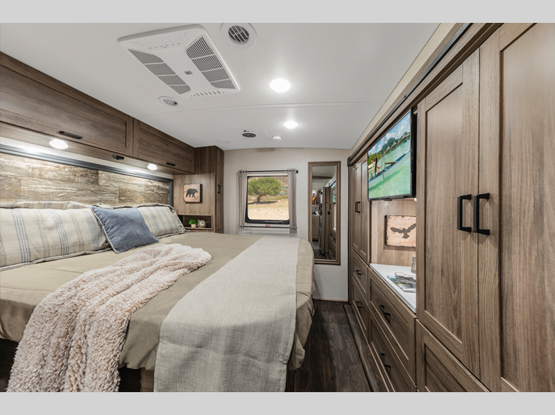 Sleeps 5 Slides 1 Length 30 ft Ext Width 8 ft 6 in Ext Height 12 ft 1 in Int Height 6 ft 8 in Interior Color Town & Country Exterior Color Glacier, Canyonlands Hitch Weight 5000 lbs GVWR 18000 lbs Fresh Water Capacity 71 gals Grey Water Capacity 61 gals Black Water Capacity 40 gals Furnace BTU 35000 btu Generator 4000 Cummins Onan MicroQuiet Gas Fuel Type Gasoline Engine 7.3L PFI V8 Chassis Ford F53 Fuel Capacity 80 gals Wheelbase 190 in Available Beds RV King Refrigerator Type Two Door 12VDC Stainless Steel Refrigerator Size 10 cu ft Cooktop Burners 3 Shower Size 26" x 38" Number of Awnings 1 Axle Weight Front 7000 lbs Axle Weight Rear 12000 lbs LP Tank Capacity 76.14 lbs Water Heater Capacity 6 gal Water Heater Type LP AC BTU 15000 btu Basement Storage 122 cu. ft. TV Info LR 39" LCD HDTV, Ext. 39" HDTV Awning Info 17' Armless Power w/ LED Lights Gross Combined Weight 23000 lbs Shower Type Standard Electrical Service 30 amp Similar Floorplans